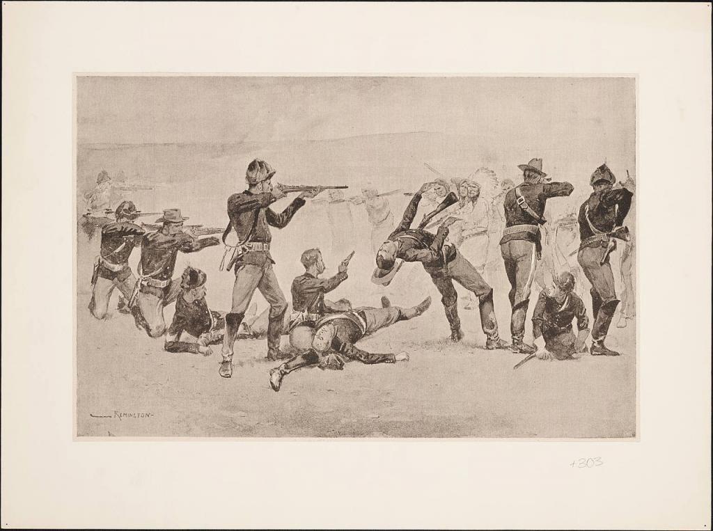 Illustration par l'artiste américain Frederic Remington. in 'Harper's Weekly,' 1891. Yale Collection of Western Americana, Beinecke Rare Book and Manuscript Library, Yale University, New Haven, Connecticut.