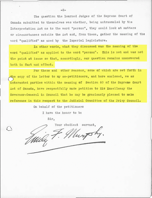 For these and other reasons, some of which are set forth in the copy of the letter to my co-petitioners, and here enclosed, we as interested parties within the meaning of Section 60 of the Supreme Court Act of Canada, have respectfully made petition to His Excellency the Governor-General in Council that he may be graciously pleased to make reference in this respect to the Judicial Committee of the Privy Council.
